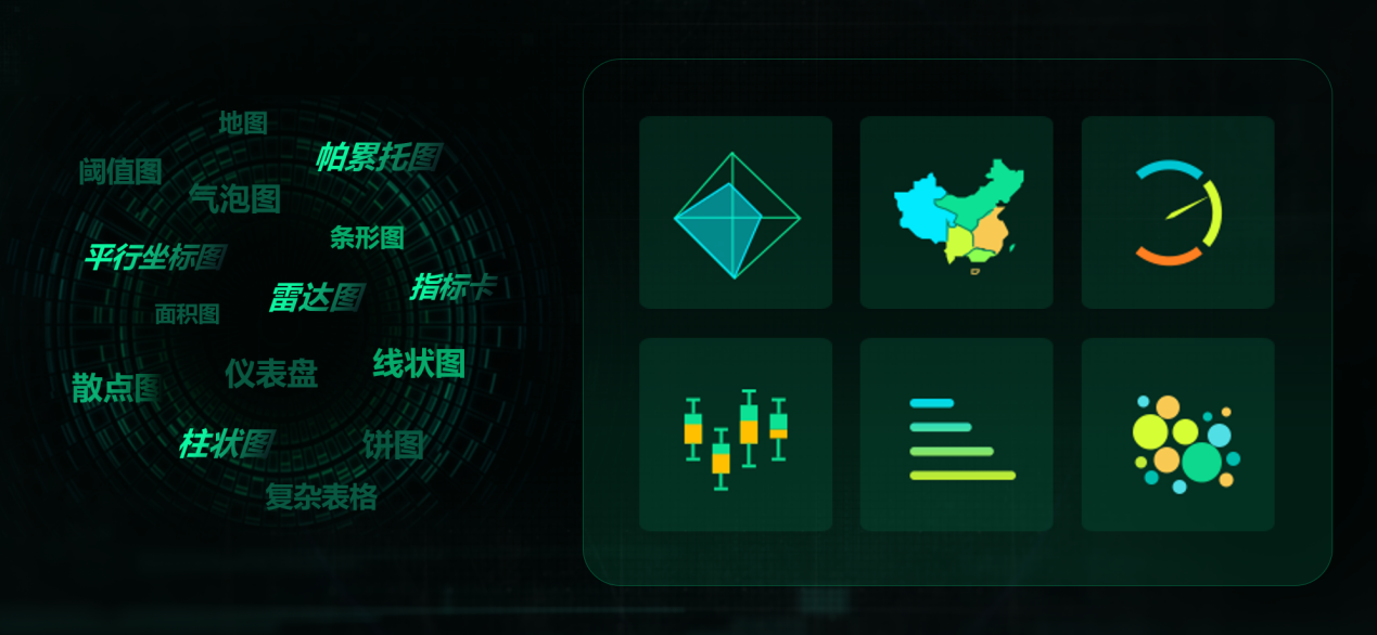 支持敏捷看板,即席報告,幻燈片等多種分析方式,使數(shù)據(jù)分析更貼近用戶應(yīng)用的場景。并且提供多種可視化組件:表格、常規(guī)統(tǒng)計圖、html5統(tǒng)計圖、地圖等。